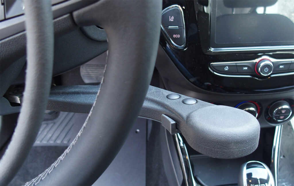 Ši stabdžių svirtis, padengta odine rankena, yra pritvirtinta prie specialios laikiklio konstrukcijos, kuri tvirtinama prie originalių vairuotojo sėdynės tvirtinimo taškų. Dėl to po vairu nebelieka papildomų kliūčių, o vairas išlaiko savo aukščio ir gylio reguliavimo galimybes.